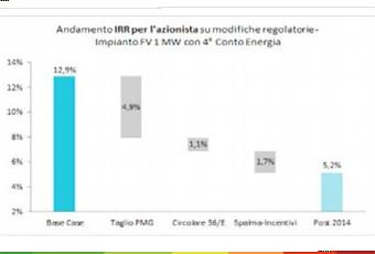 Di fatto, il provvedimento colpisce pertanto quasi esclusivamente il fotovoltaico, peraltro già penalizzato negli ultimi anni da diverse modifiche della normativa pregressa (eliminazione dei prezzi minimi garantiti, introduzione dell’IMU, eliminazione dell’indicizzazione tariffa Incentivante per gli impianti realizzati col Primo Conto Energia, estensione alle rinnovabili della Robin Hood Tax maggiorata, ecc.).La somma di tali modifiche condurrà nel solo 2014 a una riduzione di fatto degli incentivi per oltre 1 miliardo di euro.