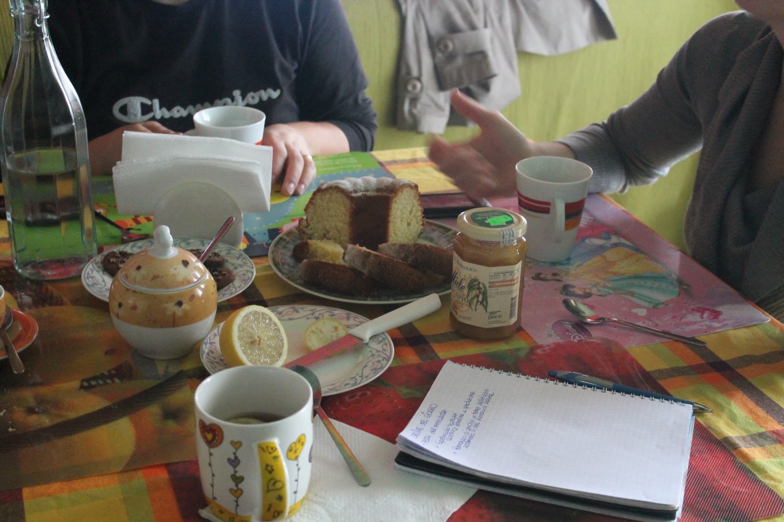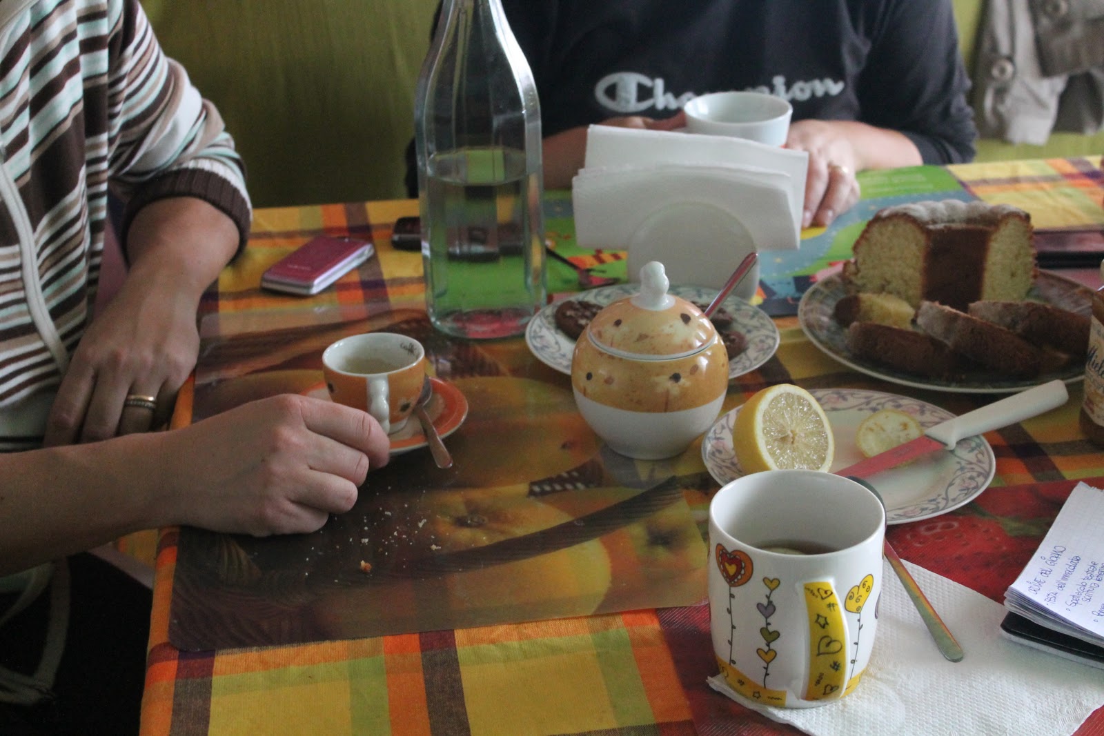 Il latte e cioccolato della Princi, in una tazza che ha appena 25 anni, si perchè mi è stata regalata quando sono nata ed è giunta intatta fino a mia figlia. La ciambella della nonna. Buongiorno 11.11.11. La Princi ha beccato la stomatite, abbiamo inaugurato la stagione dei malanni e per qualche giorno resterà a casa, niente asilo e la mamma tutta per se.Il pediatra ha detto che non deve prendere freddo che deve stare al caldo, ciò vuol dire niente uscite e se lei non può uscire significa che anche io non posso uscire e se io non posso uscire i brainstorming si fanno a casa, magari a colazione magari davanti ad una bella tazza di tè o di caffè.
