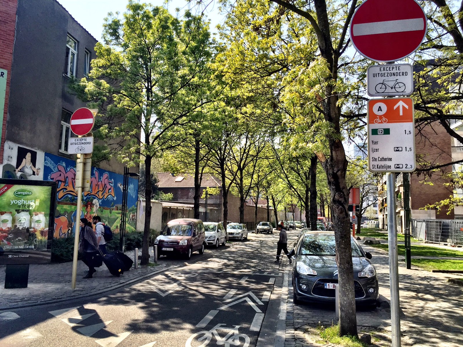 A Bruxelles non hanno avuto Maurizio Lupi che si è opposto al "senso unico tranne bici" e dunque tutti i sensi unici sono "tranne bici". In bici si può andare contro mano e i percorsi sono incoraggiati con tanto di distanze chilometriche, itinerari e indicazioni sulle stazioni della metropolitana che si incontrano sul percorso. Bruxelles è molto, ma molto più scoscesa di Roma. Sappiatelo.