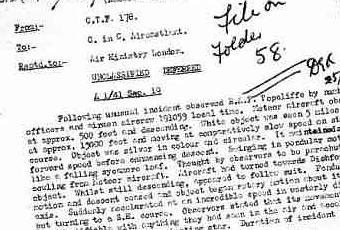 Il 19 settembre 1952 avvenne una delle esercitazioni NATO più corpose dalla fine della Seconda Guerra Mondiale. Si chiamò “Operazione Mainbrace” e coinvolse 80.000 uomini, oltre 200 navi e circa 1000 aerei. Le nazioni partecipanti furono Stati Uniti, UK, Norvegia, Francia, Canada, Danimarca, Paesi Bassi, Norvegia, Portogallo e Belgio. Non tutti sanno che quel giorno uno strano intruso, proveniente (probabilmente) dallo spazio extra-atmosferico, si presentò inaspettatamente. Era un classico “flying saucer” (disco volante). La prova in un documento declassificato, catalogato AIR16/1199, che si trova negli archivi britannici sugli UFOs. Questo documento è illustrato anche nel libro (inedito in Italia) pubblicato (per conto del Ministero della Difesa inglese) da David Clarke dal titolo “UFO Files”. L’avvistamento ha coinvolto diversi navigli, tra cui il 269° Squadrone. Il responsabile dell’epoca era il tenente di volo John Kilburn. Tutti videro apparire dal nulla un “piatto volante”, circolare e di colore argenteo. Località Topcliffe (Yorkshire del Nord). Mentre il personale militare notava le evoluzioni di un caccia “Meteor”, che proveniva da est e si trovava a circa 5000 piedi di quota, improvvisamente videro anche un altro oggetto. Era all’inizio bianco, in alto nel cielo. La quota dell’intruso era di circa 10.000/20.000 piedi circa, a circa 5000 piedi dalla poppa del “Meteor”. Una volta focalizzato meglio, l’intruso volante si dimostrò di colore argenteo, circolare e sembrava viaggiare ad una velocità inferiore rispetto al “Meteor”. Sembrava procedere sulla stessa rotta dell’aereo militare. Dopo qualche secondo, il “disco volante” incomincia a scendere di quota, oscillare come “un pendolo”, simile alla caduta di una foglia. In un primo momento, i militari presenti alla scena pensarono ad un paracadute o un pezzo di motore dell’aereo. Il “Meteor” poi si diresse verso Dishforth e l’UFO continuò per altri pochi secondi a scendere. Subito dopo arrestò la sua discesa a “pendolo” e incominciò a ruotare attorno al proprio asse. Poi, improvvisamente, accelerò ad una velocità incredibile verso ovest, girando poi verso sud-est prima di scomparire. Gli osservatori riferiscono che i movimenti dell’oggetto non erano identificabili con qualsiasi cosa abbiano mai visto nell’aria e il tasso di accelerazione è stato incredibile, una accelerazione superiore a quella di una stella cadente. L’avvenimento durò circa 20 secondi. Un avvistamento reale, di cui mai se ne parla. Qui si parla di un “disco volante”, che fa “scacco matto” ad una esercitazione corposa della NATO, un “disco volante” reale e non illusorio. Un caso che entra nella storia.