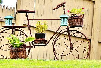 Per il giardino, la bici diventa un ornamento speciale da abbellire con fiori e vasi da inserire nel cestello anteriore o sul portapacchi posteriore.