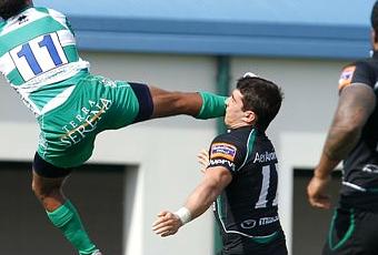 Anche il XV della Benetton Treviso è fatto per il settimo turno di Pro12: match casalingo contro i Dragons che avevano annunciato la formazione prima di raggiungere l'Italia e dove si registra un cambio dell'ultima ora con il mediano Wayne Evans sostituito da Joe Bedford (kick off alle 15, collegamento da Monigo con RR dalle 14.30). Un giorno particolare per Brendan Williams che stacca il 200° biglietto con la maglia dei Leoni: caso vuole che un anno fa, contro i gallesi, accadde lo stesso per Enrico Pavanello. Dingo calcherà da solo per primo il campo accompagnato dalla figlia di cinque anni Chanel: per l'occasione, maglietta celebrativa e nuovo paio di scarpette da mettere ai piedi. Coach Franco Smith schiera il trequarti australiano, italiano d'adozione, all'ala, con Ludovio Nitoglia estremo e Tommaso Benvenuti a chiudere il triangolo allargato sull'altra fascia: sono tornai gli Azzurri, anche nella Marca. Alberto Sgarbi è primo centro, al suo fianco Ezio Galon. Altri nazionali di nuovo in pista: il mediano di mischia Fabio Semenzato, coadiuvato da Kris Burton - uno che in Nuova Zelanda non c'era e che nelle scorse settimane ha messo la firma sulla storica tripletta dei biancoverdi in campionato.