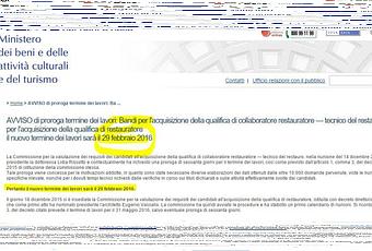 Questo per chi è restauratore è comprensibile; per chi non lo è significa che OGGI il Ministero dovrebbe, dopo proroghe su proroghe, determinare la lista dei collaboratori restauratori come da bando.