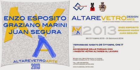 Oggi, sabato 26 ottobre, alle ore 17, presso il Museo dell'Arte Vetraria Altarese, verrà inaugurata la terza edizione della rassegna “Altare Vetro Arte”, curata e ideata da Enzo L’acqua e Maria Teresa Chirico, che vedrà all'opera, nella fornace del museo, i maestri vetrai altaresi. Il comune di Altare, famoso per la sua arte vetraria, si trova nell’entroterra di Savona, e vanta da secoli un fiorente artigianato di vetri artistici.