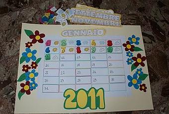 Inizio con il calendario: è per l'asilo, i giorni i mesi e i simboli meteo sono dotati di felcro per attaccarli e staccarli man mano che il calendario si completa: