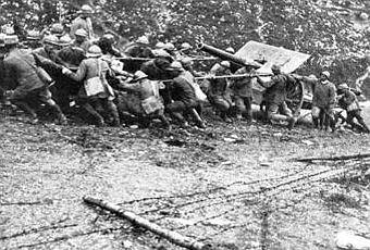 Nella pianura, S.A.R. il Duca d’Aosta avanza rapidamente alla testa della sua invitta III armata, anelante di ritornare sulle posizioni da essa già vittoriosamente conquistate, che mai aveva perdute.