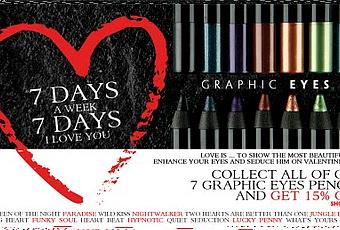 (le immagini sono state prese dal sito a scopo puramente illustrativo)Per il giorno più romantico dell'annoZoeva ci propone una vantaggiosissima offertache ci consente di risparmiaresulla nostra bellezza e sensualità ♥Si tratta di uno sconto del 15 % applicato sul Graphic Eyes Pencilse acquistate tutte insieme.Il totale ammonterà ad una somma equivalente a 25 euro ^_^Ricordo che le matite se acquistate singolarmentehanno un valore di 4,20€ l'una.Colorazioni disponibili:NightwalkerFunky solulParadiseNyxHypnoticLucky PennyJungle PassionPer ulteriori informazionicliccare quiZoeva Graphic Set