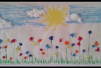 Se guardiamo fuori dalla finestra vediamo solo cielo grigio, nuvole che coprono il cielo e pioggia che scende; non è certo bello tanto più che questo tempo ci fa stare in casa con le luci accese invece di inondarci dei bei raggi di sole. Oggi ho deciso che se la Primavera non vuole arrivare, almeno in casa nostra la faremo arrivare noi e così… mega cartellone primaverile seguendo il motto “se Maometto non va alla montagna, la montagna va da Maometto“.