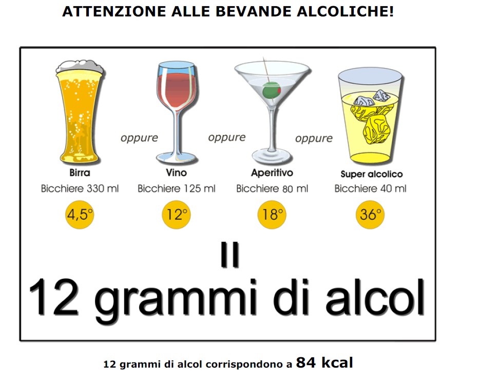 E un paragone tra le Calorie fornite dalle bevande alcoliche.