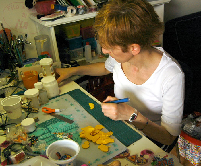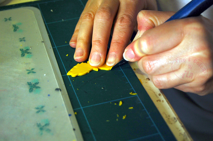 In questa prima sezione di foto sono alle prese con la preparazione delle piastrine in pasta polimerica modellabile, per le collane ONOMATOPEICHE.