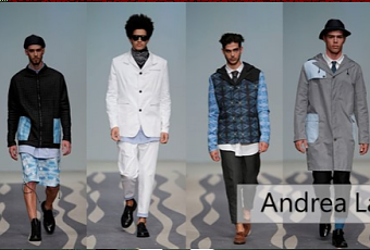 Andrea Lazzari: Ho lavorato sul tema del mare partendo da una visione analitica dell’acquario e reinterpretando l’immaginario adattandolo allo stereotipo di moda maschile e di ricerca. Da lì la ricerca su pattern e stampe a contrasto con capi più formali e rigorosi.