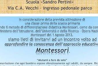 A seguito della richiesta di attivazione, per il prossimo anno scolastico, di una prima classe della scuola primaria, secondo il metodo di differenziazione didattica Montessori, il gruppo di genitori che si è attivato per la costituzione della classe ha organizzato questo incontro volto ad approfondire la conoscenza dell’approccio educativo Montessori.