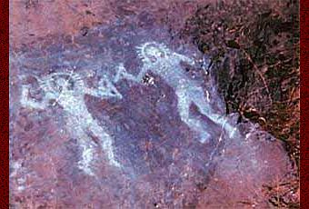 Intricate pitture rupestri preistoriche, che raffiguravano extraterrestri e velivoli simili agli UFO. Le immagini sono state scoperte nel distretto di Hoshangabad (Stato di Madhya Pradesh), a soli 70 chilometri dal centro comunale di Raisen.
