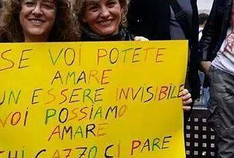 E quando vedo gente come le 'sentinelle in piedi' mi spavento come quando vedo quelli dell'ISIS. Perché la violenza non è solo decapitare fisicamente le persone, tutt'altro: la violenza è anche impedire ad altri di avere la mia stessa libertà, i miei stessi diritti, la mia stessa possibilità di vivere come meglio posso questo scampolo di vita che il destino mi ha dato.
