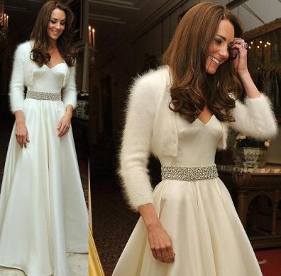 Lì cambio d'abito sia per William che ha indossato uno smoking nero con papillon , sia per Kate che ha indossato un'altro abito bellissimo di Sarah Burton per McQueen in seta pianco con corpetto e cintura di diamanti, con un golfino in angora per resistere al freddo clima londinese. Bellissima!