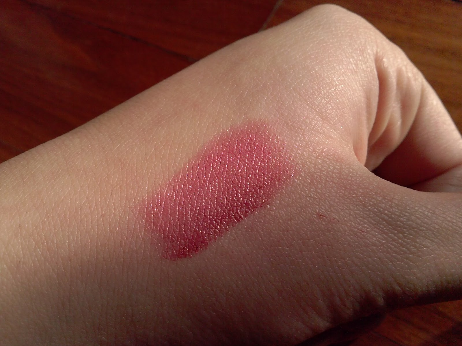 Il colore è un lampone con all'interno una miriade di microglitter oro, che una volta steso però non si notano e non creano un effetto troppo chiassoso. Il colore è modulabile, con una sola passata si ha già un colore pieno che rimarrà tale per almeno le 4 ore successive, poi avrà bisogno di un ritocco. Secondo me è portabilissimo come colore, è molto naturale, anche su di me che la pigmentazione le mie labbra non sanno manco cosa sia, e non fa nè l'effetto flash nè sulla linea del volgare/inappropiato (per intenerci, avete mai visto le 12enni con i rossetti rossi o fuxia a scuola? Io sono giovane, va bene, ma mai messo un rossetto del genere prima dei 15, e non a scuola). L'applicazione risulta scorrevole e semplice, e una volta su non sbava e non se ne va in giro per i fatti suoi. Ovviamente, non essendo no-transfer, appena sfiorerete qualcosa se ne andrà via (l'altro giorno ho stampato un bacio sulla guancia di un mio amico ed è rimasta la sagoma delle labbra *.* ). Sulle labbra la sensazione è piacevole, non fa spessore e non tira, anzi, è piuttosto idratante (anche se non è il modo migliore per idratare le labbra).