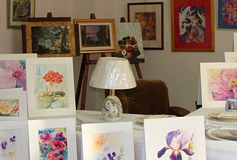 Oltre al quadro "il giardino dei tulipani", che è stampato anche sulla cartolina di presentazione, sono esposti 16 acquerelli nei passepartout, dove la tecnica può essere vista senza la penalizzazione del vetro.