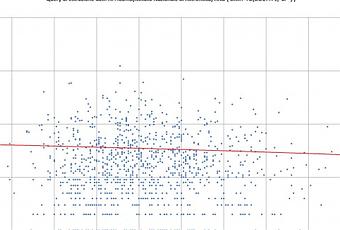Ma ciò che più conta è che sì, anche per il ridotto corpus da noi preso in esame la tendenza osservata dai ricercatori inglesi sembra presentarsi, come si evince dalla linea rossa in leggera discesa nel grafico qui di seguito (cliccare per ingrandire):