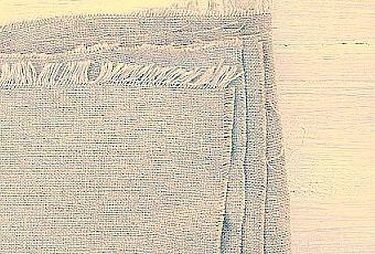 Ho iniziato tagliando un cartamodello di 45 x 45 cm, che ho poi riportato sulla stoffa e ho imbastito i due pezzi.