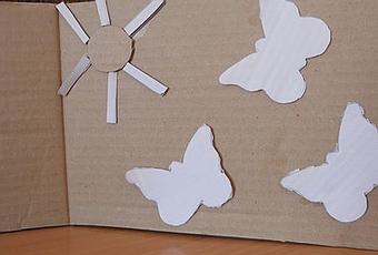 Questo è un album speciale perchè sopra non si disegna con una matita, ma con pezzettini di cartone. Per fare i disegni, infatti, Marco ha utilizzato alcuni scarti come questi: