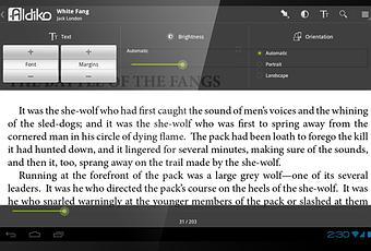 - Esperienza di lettura completamente personalizzabile: regolare la dimensione del carattere, il tipo di font, colori dei caratteri e dello sfondo, il margine, allineamento, interlinea e la luminosità per soddisfare al meglio le proprie preferenze. Il Aldiko Book Reader supporta anche la lettura notturna.