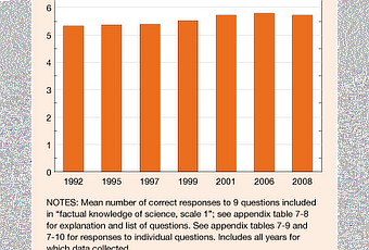 Factual knowledge of science is positively related to people's level of formal schooling, income level, and the number of science and math courses they have taken.[...] In the factual questions included in NSF surveys since 1979, which allow for the observation of trends over time (referred to as "trend factual questions" below), men score higher on the questions in the physical sciences and women score higher on those in the biological sciences.