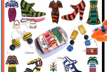 Ispirazione latino americana per la collezione Prada primavera estate 2011: giallo, arancio, blu pavone, verde, bianco e nero; grandi righe orizzontali e fantasie caraibiche con banane, scimmie e cherubini.