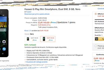 Amazon Prime Day: smartphone Huawei G Play Mini a 149 euro con prezzo scontato del 31%