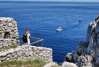 E alla fine del cammino, quella meraviglia della Grotta Azzurra sarà la meritata ricompensa della passeggiata. Mettetevi pazientemente in coda sulla scaletta che scende al mare e aspettate il vostro turno per salire sui barchini a remi che sono gli unici autorizzati a entrare nell'antro dove la luce esterna che si riflette sul fondo crea magici giochi di luce, rendendo l'acqua quasi fosforescente. Pensate che gli imperatori romani la usavano come piscina privata, ma poi fu abbandonata per secoli, perché si credeva fosse infestata da spiriti maligni.
