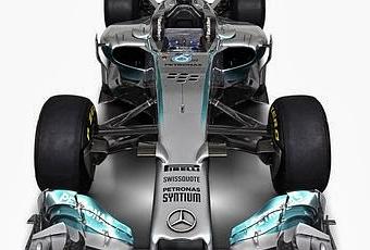 Stamattina è stata presentata nella pitlane di Jerez l'interessantissima Mercedes W05, dopo una serie di particolari postati sulla pagina twitter ufficiale del team. Partendo come di consueto dall'anteriore, si nota come la forma del muso sia la più "tradizionale" tra quelle disegnate dai progettisti: il naso si presenta molto largo, piatto e corto, raggiungendo senza "becchi" l'altezza di 185 mm. La soluzione si avvicina molto a quella della F14 T, seppure la forma di tutto il muso sia molto più lineare e fa pensare all'utilizzo del vanity panel come sulla Sauber. Ricordano la F14 T anche le vistose telecamerine ad "ala di gabbiano". I piloni sono molto larghi e non sono, almeno alla presentazione, agganciati lungo tutta la loro lunghezza all'ala: forse dopo il cedimento strutturale di stamattina sulla vettura di Hamilton avranno ritoccato questo particolare. L'ala anteriore risulta molto complicata nei profili e nelle soffiature, e dalla forma di tutte le paratie verticali è evidente la volontà degli ingegneri di portare il flusso all'esterno delle ruote anteriori, la soluzione che finora ha raccolto la totalità dei consensi, un po' quello che ci aspettavamo come scritto in un post riguardante l'indirizzamento dei flussi dall'ala anteriore. Uno degli aspetti più particolari di questa vettura riguarda la sospensione anteriore, di tipo push rod: essa evidenzia infatti una maniacale attenzione aerodinamica nel pulire i flussi destinati alle pance e soprattutto ai radiatori. Il tirante dello sterzo è stato rialzato fino ad allinearsi con il braccetto superiore, pulendo l'area compresa tra i due bracci e creando di fatto un unico profilo, come si può vedere nel particolare in foto.