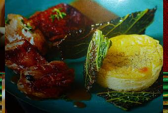 l'anatra viene aromatizzata con ginepro e servita con un tortino di topinambur e chips di verza un'ottima ricetta anche come piatto unico