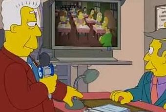 La politica italiana entra nel mondo dei Simpson e non ci fa una bella figura. Al minuto 0.51 dell'episodio del 534esimo episodio un giornalista del cartone animato definisce la scuola di Bart e Lisa 'più corrotta del Parlamento italiano'.