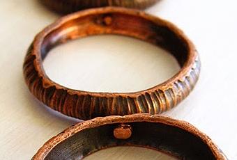 Questi cerchi in rame li avete già visti, simili, in una collana di qualche mese fa, che rimane una delle cose che ho amato di più fra i gioielli realizzati lo scorso anno. Cerchi e ancora cerchi, una forma rassicurante, che non ha fine e non ha inizio. Cerchi uno dietro l'altro, a comporre il centrale di questa collana, uniti fra loro da semplicissimi chiodini perchè siano liberi di muoversi.