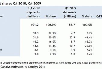 Come possiamo notare, i dati parlano da soli: Android e Google dominano la classifica di vendite per il periodo che va da ottobre a dicembre 2010, surclassando anche un’azienda come Nokia.