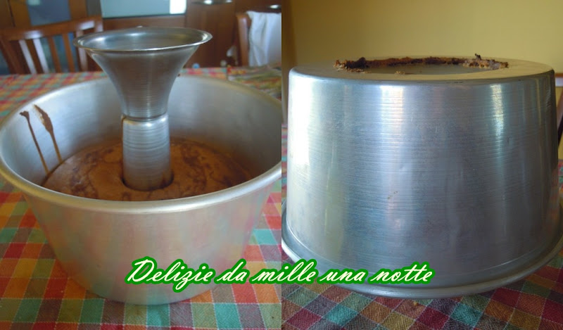 Montare gli albumi con il pizzico di sale, sempre montando aggiungere lo zucchero poco alla volta. Gradualmente aggiungere la farina setacciata con il lievito. Mettere metà composto in uno stampo a ciambella, meglio se quello alto con il fondo apribile, nel restante impasto aggiungere il cacao amaro, amalgamare e versare questo composto nella teglia in modo circolare sopra l'imapasto bianco. Infornare in forno caldo a 180 ° per circa 45-50 minuti (vale la prova stecchino). Una volta cotta togliere dal forno e capovolgere la teglia, lo stampo che ho utilizzato io ha un apposito piedistallo che si inserisce al centro dello stampo stesso, ma se non l'avete potete usare il collo di una bottiglia come supporto. Io in genere la lascio in questa posizione per tutta la notte, in questo modo la torta non si smonta.