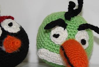 lana o cotone verde 1 gomitolo da 50 grlana o cotone arancione ne basta un quarto di gomitololana o cotone nero un paio di gugliatelana o cotone bianco un quarto di gomitololana o cotone giallo 1 gugliataCorpo (verde)magic ring di 8 mbGiro1: 2 mb in ogni mbGiro 2: * 2 mb nella mb successiva, 1 mb nella mb successiva. Ripetere da * fino alla fineGiro 3: *2 mb nella mb successiva, 1 mb in ognuna delle 2 mb successive. Ripetere da * fino alla fineGiro 4: *2 mb nella mb successiva, 1 mb in ognuna delle 3 mb successive. Ripetere da * fino alla fineGiro 5: *2 mb nella mb successiva, 1 mb in ognuna delle 4 mb successive. Ripetere da * fino alla fineGiro 6: *2 mb nella mb successiva, 1 mb in ognuna delle 5 mb successive. Ripetere da * fino alla fineGiro 7-11: 1 mb in ogni mbGiro 12: *1 diminv, 1 mb in ognuna delle 5 mb successive. Ripetere fino alla fineGiro 13: *1 diminv, 1 mb in ognuna delle 4 mb successive. Ripetere fino alla fineGiro 14: *1 diminv, 1 mb in ognuna delle 3 mb successive. Ripetere fino alla fineGiro 15: *1 diminv, 1 mb in ognuna delle 2 mb successive. Ripetere fino alla fineGiro 16: *1 diminv, 1 mb in ognuna delle 1 mb successive. Ripetere fino alla fineImbottireTagliare il filo in modo da lasciarne qualche centimetro per chiudere e cucire. Con un ago da lana raccogliere i punti e chiudere.Occhi x 2 (bianco)magic ring di 6 mbGiro1: 2 mb in ogni mbGiro 2: * 2 mb nella mb successiva, 1 mb nella mb successiva. Ripetere da * fino alla fineChiuderePancia (bianco)Catenella di 6 Lavorando tutto intorno alla catenella 1 mb in ogni cat, nelle 2 catenelle prima di girare fate 2 mb in modo da dare una forma tondeggiante.ChiudereBecco (arancione)magic ring di 6Giro 1: 2 mb in ogni mbGiro 2: *2mb, 1 mb nelle successive 3 mb. Ripetere da * fino alla fineGiro 3-5: 1 mb in ogni mbGiro 6: *2mb, 1 mb nelle successive 3 mb. Ripetere da * fino alla fineGiro 7-14: 1 mb in ogni mbCambia colore in gialloGiro 15-16: 1 mb in ogni mbimbottireSopracciglia x 2 (nero)8 catenelleRiga 1: 1 mb in ogni catenellaChiudereCiuffetto (nero)8 catenelleTornando indietro 1 mb in ogni catenella5 catenelleTornando indietro 1 mb in ogni catenella5 catenelleTornando indietro 1 mb in ogni catenellaChiudereCucire la pancia nella parte bassa del corpo. Poco più in alto cucire il becco sul quale ricamerete poi a punto scritto con il nero il becco sui due lati.Poco sopra al becco, ai lati, cucite gli occhi e con il filo nero fate le pupille a punto nodino.Cucite le sopracciglia sugli occhi dandogli una forma "arrabbiata".Finite cucendo il ciuffetto al centro della testa.Angry Bird: NeroOccorrentelana o cotone nero 1 gomitolo da 50 grlana o cotone arancione ne basta un quarto di gomitololana o cotone rosso 1 gugliatalana o cotone bianco 1 gugliatalana o cotone giallo 1 gugliataCorpo (nero)magic ring di 8 mbGiro1: 2 mb in ogni mbGiro 2: * 2 mb nella mb successiva, 1 mb nella mb successiva. Ripetere da * fino alla fineGiro 3: *2 mb nella mb successiva, 1 mb in ognuna delle 2 mb successive. Ripetere da * fino alla fineGiro 4: *2 mb nella mb successiva, 1 mb in ognuna delle 3 mb successive. Ripetere da * fino alla fineGiro 5: *2 mb nella mb successiva, 1 mb in ognuna delle 4 mb successive. Ripetere da * fino alla fineGiro 6: *2 mb nella mb successiva, 1 mb in ognuna delle 5 mb successive. Ripetere da * fino alla fineGiro 7-11: 1 mb in ogni mbGiro 12: *1 diminv, 1 mb in ognuna delle 5 mb successive. Ripetere fino alla fineGiro 13: *1 diminv, 1 mb in ognuna delle 4 mb successive. Ripetere fino alla fineGiro 14: *1 diminv, 1 mb in ognuna delle 3 mb successive. Ripetere fino alla fineGiro 15: *1 diminv, 1 mb in ognuna delle 2 mb successive. Ripetere fino alla fineGiro 16: *1 diminv, 1 mb in ognuna delle 1 mb successive. Ripetere fino alla fineImbottireTagliare il filo in modo da lasciarne qualche centimetro per chiudere e cucire. Con un ago da lana raccogliere i punti e chiudere.Occhi x 2 (bianco)magic ring di 6 mbGiro1: 2 mb in ogni mbGiro 2: * 2 mb nella mb successiva, 1 mb nella mb successiva. Ripetere da * fino alla fineChiudereSopracciglia x 2 (rosso)8 catenelleRiga 1: 1 mb in ogni catenellaChiudereCiuffetto (nero e giallo)Col giallo magic ring di 4 mbGiro 1: 2 mb in ogni mbIn neroGiro 2-6: 1 mb in ogni mbImbottireBecco (arancione)magic ring di 6Giro 1: 2 mb in ogni mbGiro 2: *2mb, 1 mb nelle successive 3 mb. Ripetere da * fino alla fineGiro 3-5: 1 mb in ogni mbGiro 6: *2mb, 1 mb nelle successive 3 mb. Ripetere da * fino alla fineGiro 7-10: 1 mb in ogni mbimbottireCucire il becco al centro. Poco sopra al becco, ai lati, cucite gli occhi e con il filo nero fate le pupille a punto nodino.Cucite le sopracciglia sugli occhi dandogli una forma "arrabbiata".Finite cucendo il ciuffetto al centro della testa.
