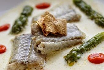 - Sistemare sul fondo del piatto la crema di sedano bianco e disporvi sopra 2-3 pezzi di anguilla.