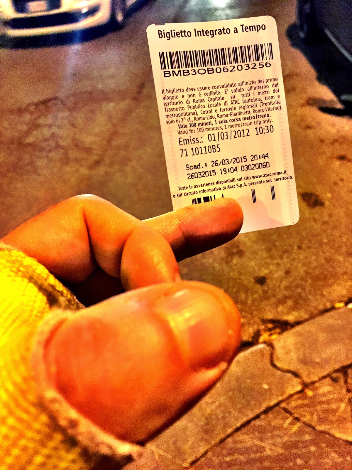 Eccola l'ormai famigerata manina gialla: è sempre il solito polso rotto, causa caduta da bici, che da qualche settimana mi obbliga a provare ciò che raramente provavo: il funzionamento dei mezzi pubblici a Roma. Ieri sera lo spostamento è avvenuto dai Colli Portuensi, incrocio con la Circonvallazione Gianicolense a Via Veneto dove l'appuntamento per cena, in un importante albergo, era per le 20 in punto.Terrorizzato dall'ora di punta e dal fatto che "A ROMA I MEZZI NUN FUNZIONANO E NUN ESISTONO" parto dal lavoro quasi un'ora prima. C'erano tante alternativa. Ad esempio prendere il 33 fino a Valle Aurelia (o a Cipro) e poi la metro A fino a Piazza di Spagna. O il 792 fino a Cornelia e poi sempre in metro fino a Spagna. Alla fine ho optato per il tram 8. Il timbro del biglietto (avvenuto pochi istanti dopo l'arrivo in fermata per fortuna) è delle 19.04.