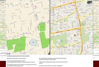 Moltissimi altri luoghi, poi, risultano essere accompagnati da etichette riportanti nomi completamente errati, così come numerose attività commerciali vengono confuse con altre, luoghi pubblici non vengono in alcun modo rilevati e più in generale il livello di dettagli non risulta in alcun modo paragonabile con quello delle mappe offerte dal colosso di Mountain View.