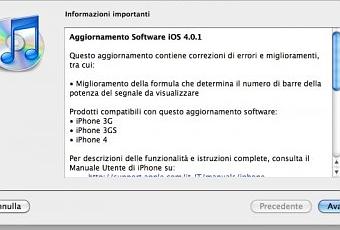 Dopo la beta del firmware 4.1, arriva anche la release ufficiale di iOS 4.0.1, che migliora la formula che determina il numero di barre della potenza del segnale visualizzate.