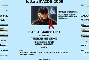Tant'è che qualcuno ha pensato di fare qualcosa per non dimenticare, sto parlando di Marco Cavalli, che presenterà " TOGLIERE IL VELO PIETOSO", un recital al teatro San Marco, a Vicenza, sulla storia sociale di questa malattia. E' importante partecipare, perchè il ricavato sarà interamente devoluto ad un ospedale per bambini sieropositivi del Guatemala.