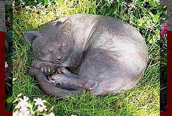 gatto che dorme, starebbe bene in un qualsiasi giardino.