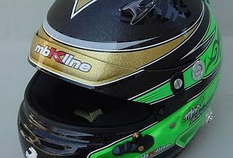 Marco mi scrive: "La decorazione è fatta con i glitters su tutti i colori ed ha un trasparente parzialmente opaco sulla calotta per ricreare l' effetto delle losanghe già utilizzate nelle fasce laterali. La visiera, appositamente tagliata, è stata verniciata come prosecuzione della grafica."