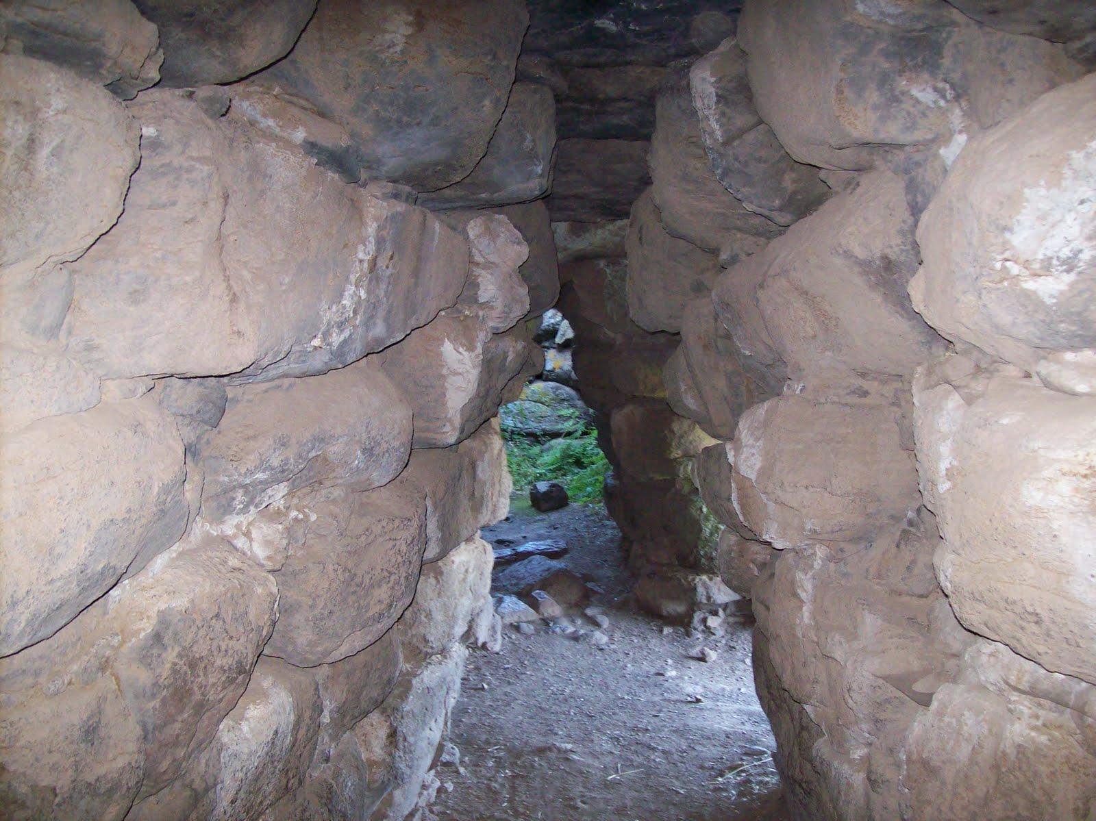La scala prosegue sino ai resti della camera del secondo piano, crollata in antico. I resti di alcune capanne e di un antemurale sono visibili intorno al monumento.