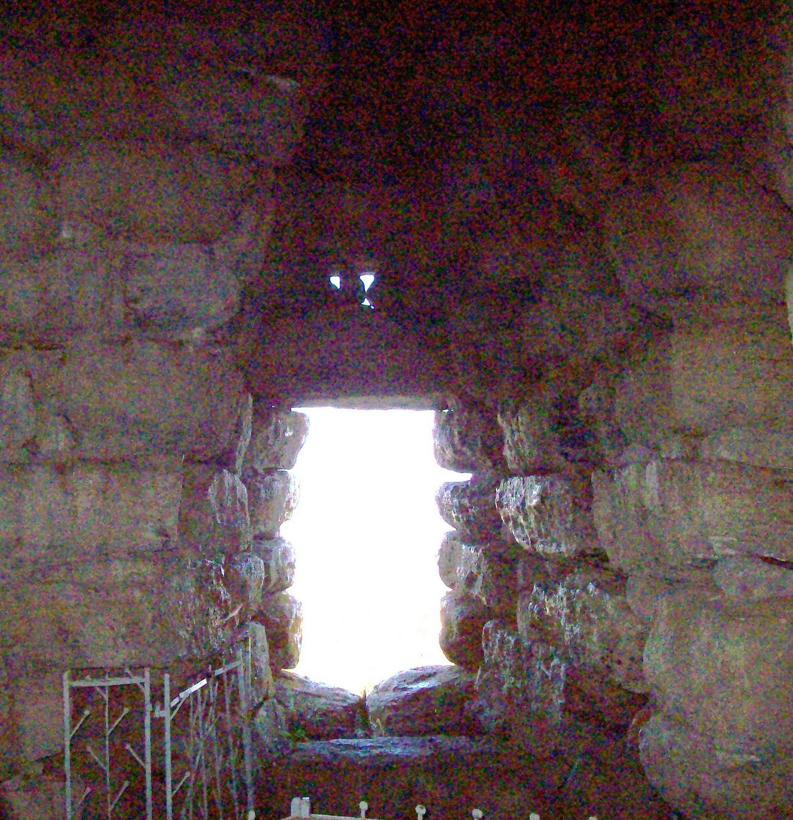 L’ambiente del primo piano è illuminato da un’apertura quadrangolare architravata. La camera presenta, oltre alle nicchie di grandi dimensioni, due pozzetti di difficile interpretazione.
