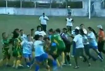 Spesso anche dalle nostre parti assistiamo ad episodi incresciosi durante le partite dei settori giovanili sia da parte dei giocatori e sia da perte del pubblico. Ma in Argentina ci hanno superato: quello che e' accaduto a Mendoza, nel corso di una partita di un torneo giovanile, non si era mai visto. I giocatori dell'Atletico Tostado, quando l'arbitro ha espulso uno di loro, hanno cominciato ad aggredirlo tutti insieme e, quando i suoi assistenti hanno cercato di soccorrerlo, hanno fatto irruzione in campo anche i tecnici della squadra, aggiungendo i loro pugni e calci a quelli dei giocatori. Torneo sospeso per 15 giorni.