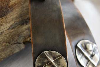 Eco-Silver, rame, argento 925, fold forming.In questi orecchini alla base in rame ho aggiunto un elemento in argento riciclato, lavorato con la tecnica del fold forming. Sarebbe bellissimo avere anche da noi aziende che si occupano del riciclo degli scarti e ti offrono la possibilità di portare i tuoi piccoli o piccolissimi scarti di metallo (vi ricordo che il rame, così come i materiali più preziosi, è interamente riciclabile) in cambio di buoni acquisto o di altro metallo, come è facile trovare all'estero. Intanto possiamo accontentarci di fare del nostro meglio per sfruttare ogni risorsa a nostra disposizione.