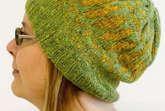 Lo schema “Arnica” è un romantico berretto lavorato bottom up e in tondo. È ornato con semplice motivo che ricorda i petali dell’arnica.