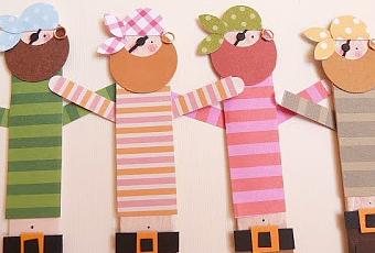 Ecco il resto della ciurma... 4 pirati cattivissimi realizzati con gli abbassalingua e ritagli di cartoncino e carta scrapbooking.Questi pirati possono diventare dei simpatici segnalibro o delle semplici marionette.