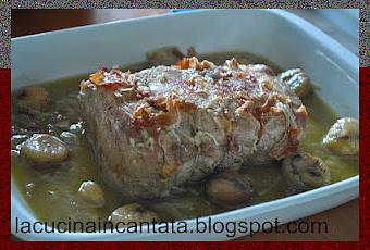Eccomi!!! vi posto questa ricetta che ho fatto oggi a pranzo e che a dicembre io e Silvia abbiamo proposto al corso di cucina de "lacucinaincanata" per la serata de "il pranzo delle feste";anche quella sera era venuto spettacolare e alcuni partecipanti lo hanno rifatto a casa con successo.Vi riporto la ricetta pari pari e io oggi l'ho seguita alla lettera. l'unica variante il forno..l'ho tenuto un ora e mezza perche' il taglio era di piu' di 800 gr..